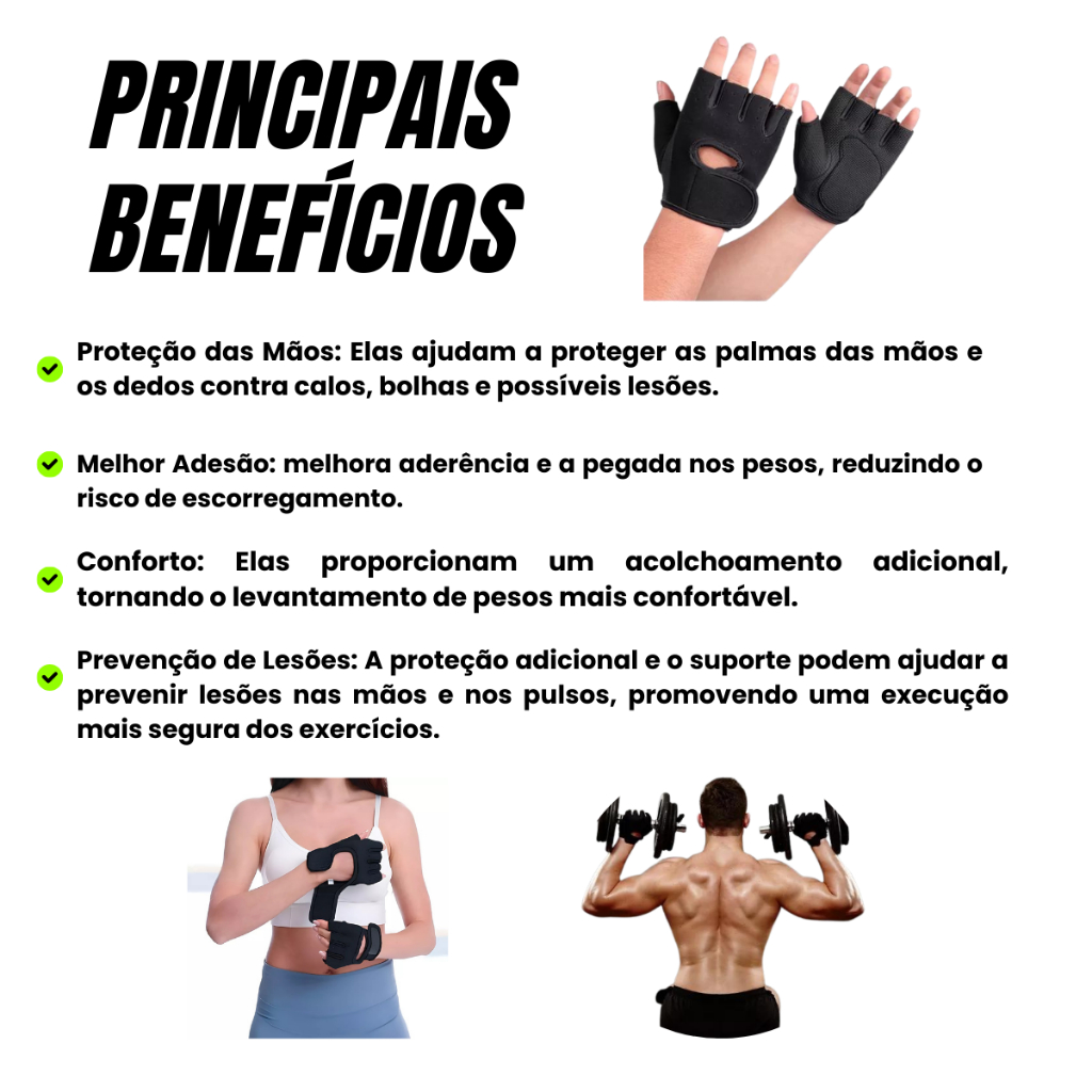 Maximize sua performance e proteja suas mãos com a Luva de Treino Unissex Ajustável, desenvolvida para proporcionar firmeza, conforto e segurança durante seus exercícios. Ideal para quem pratica levantamento de peso, ciclismo, ginástica, musculação ou pilates.